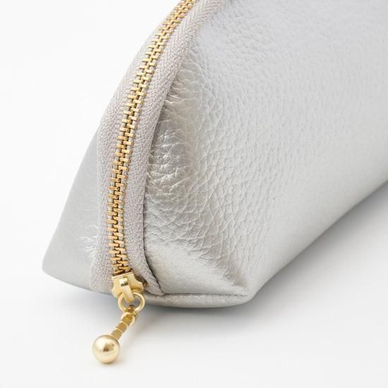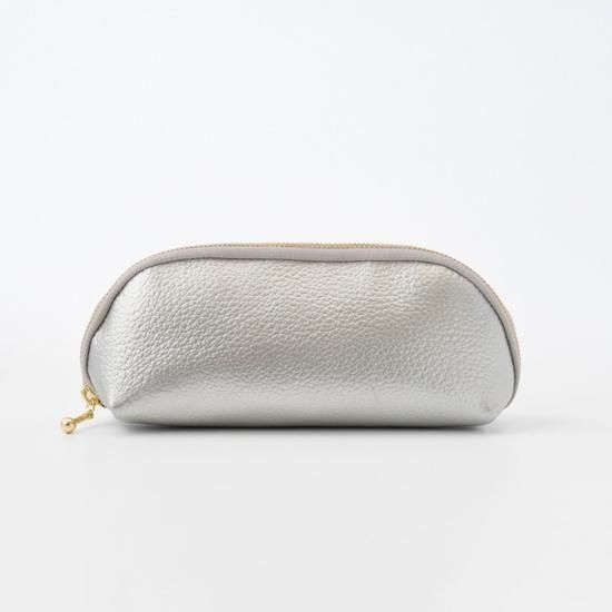 【日本製 全11色】本革マルチケース < コスメ、ペン、メガネ、小銭などの小物入れに >(シルバーメタリック)