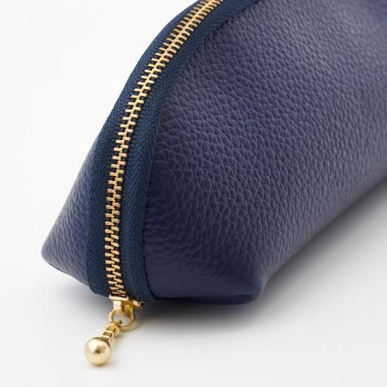 【日本製 全11色】本革マルチケース < コスメ、ペン、メガネ、小銭などの小物入れに >(ネイビー)