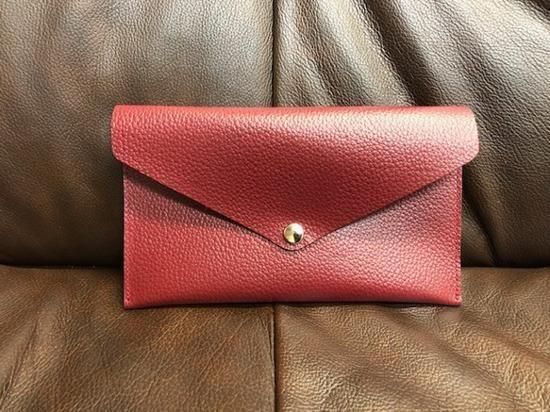 本革 リアルシュリンクレザー 牛革フラットポーチ <通帳、パスポートなどの収納に>(ワインレッド)
