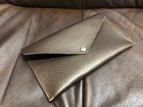 本革 リアルシュリンクレザー 牛革フラットポーチ <通帳、パスポートなどの収納に>(ブロンズ)