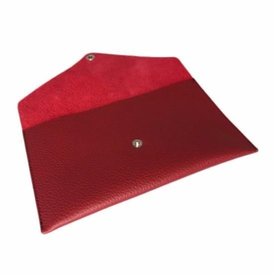 本革 リアルシュリンクレザー 牛革フラットポーチ <通帳、パスポート、マスクなどの収納に>(レッド)