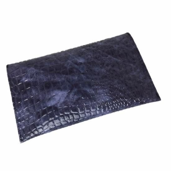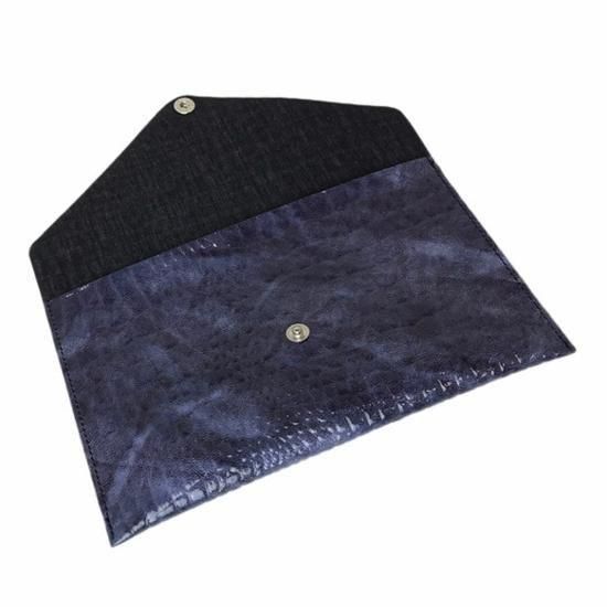 エナメル フラットポーチ クロコ型 PUレザー <通帳、パスポートなどの収納に>(ネイビー)