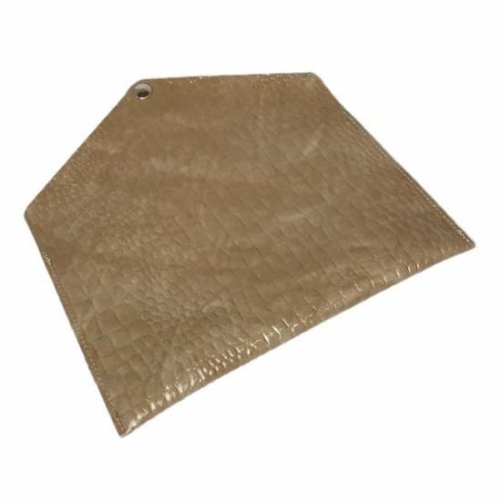 エナメル フラットポーチ クロコ型 PUレザー <通帳、パスポートなどの収納に>(ベージュ)