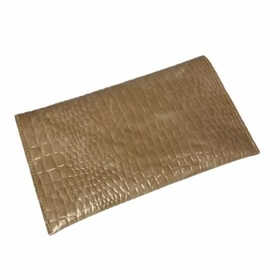 レザーのクロコ型フラットポーチで、通帳やパスポートなどをまとめて収納できます。
