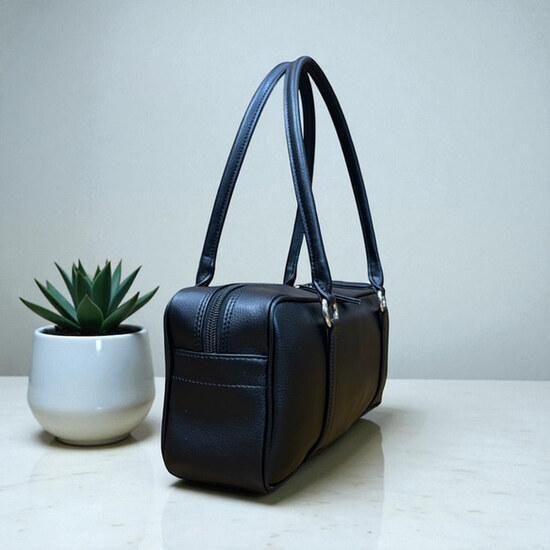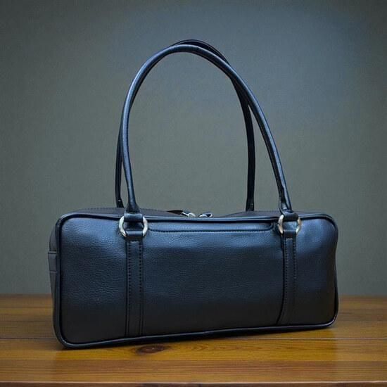 【日本製】上質PUレザー ウルトラ軽量320g 人気シリーズ 横長ボストン PUシュリンクレザー(ブラック)