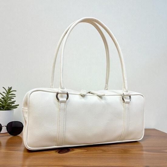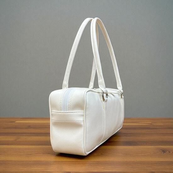【日本製】上質PUレザー ウルトラ軽量320g 人気シリーズ 横長ボストン PUシュリンクレザー(ホワイト)
